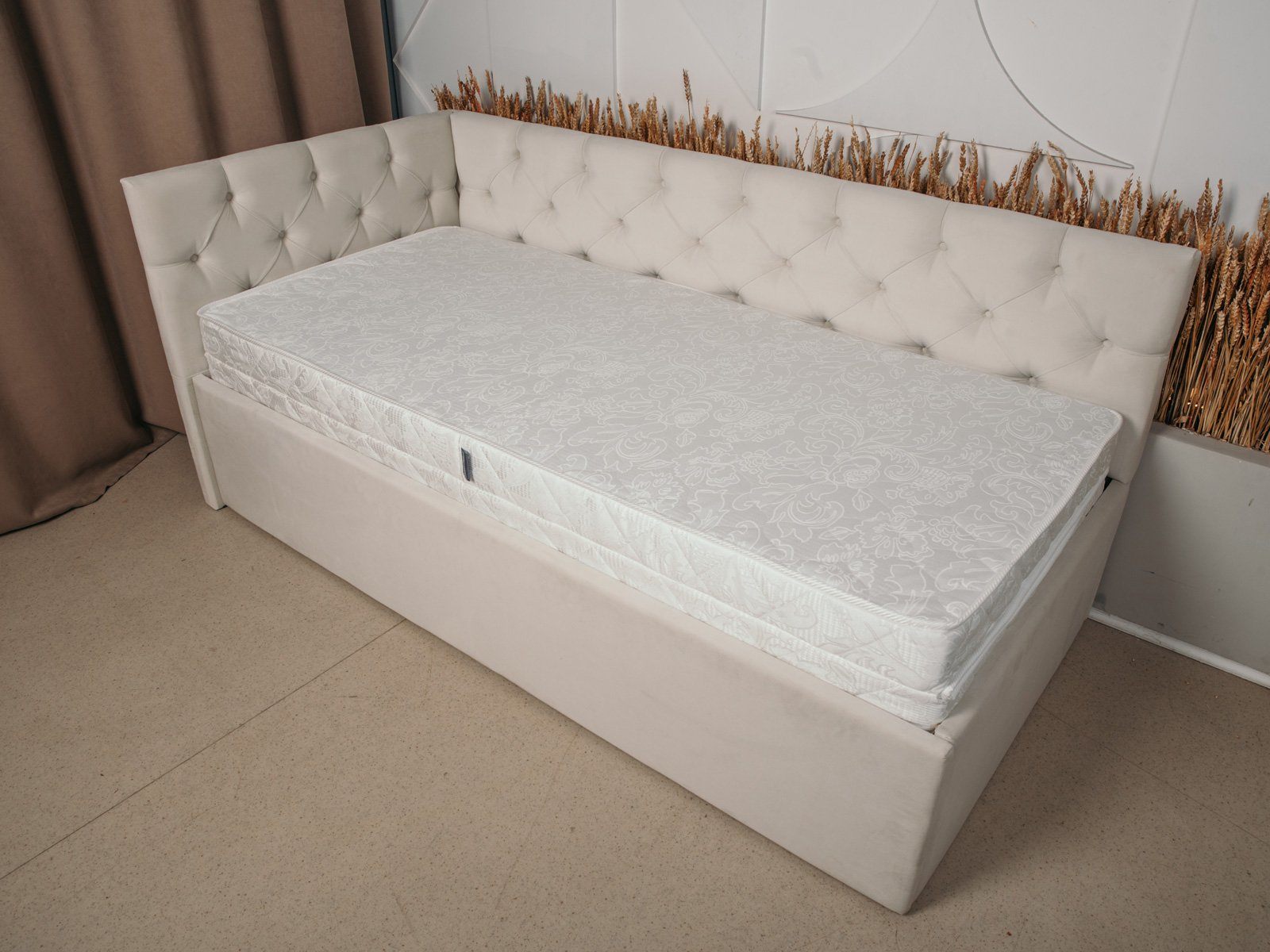 Кровать Бриони обладает элегантным лаконичным дизайном и изящно впишется в детскую комнату, спальню или гостиную. Каретная стяжка и декоративные пуговицы добавляют особую изысканность и утонченность изголовью и спинке модели.