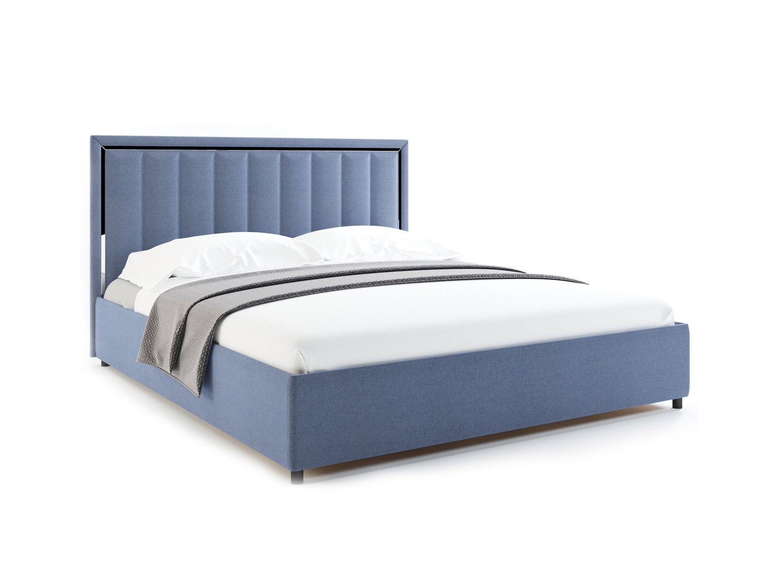 Кровать комплектуется металлическим основанием с подъемным механизмом и ящиком для белья.