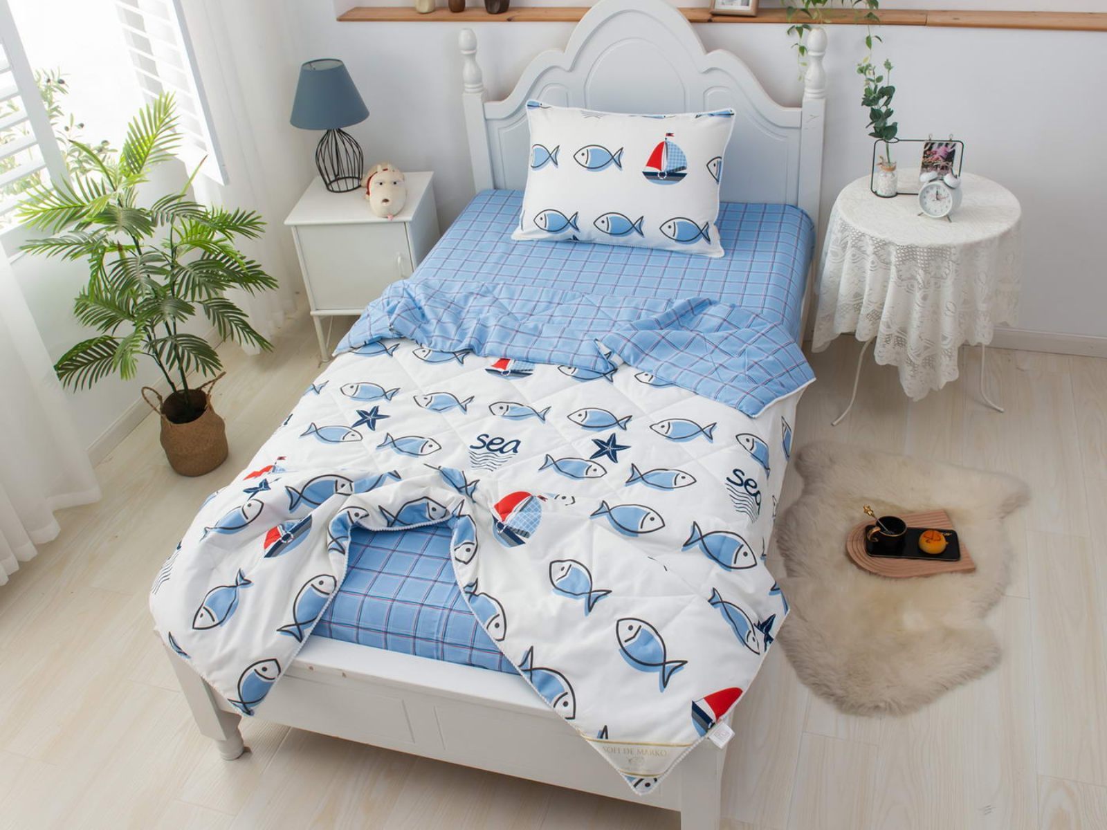 Интернет-магазин СОН.РУ предлагает купить постельное белье с доставкой по Казани . Комплект постельного белья Софи де Марко Морские рыбки с одеялом 1,5-спальный размера 1,5-спальный стоит 15 120 ₽ . На товар действует скидка в размере %. Если у вас есть вопросы по гарантии, доставке и оплате, задавайте их менеджерам нашего кол-центра по телефону: 8 800 333-65-91 .