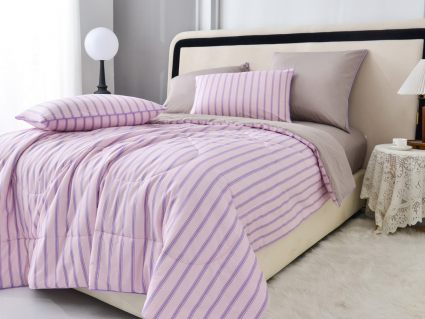 В комплект входит легкое, мягкое, летнее одеяло. Его можно стирать вместе с другим бельем, оно быстро сохнет и после стирки его не нужно гладить.