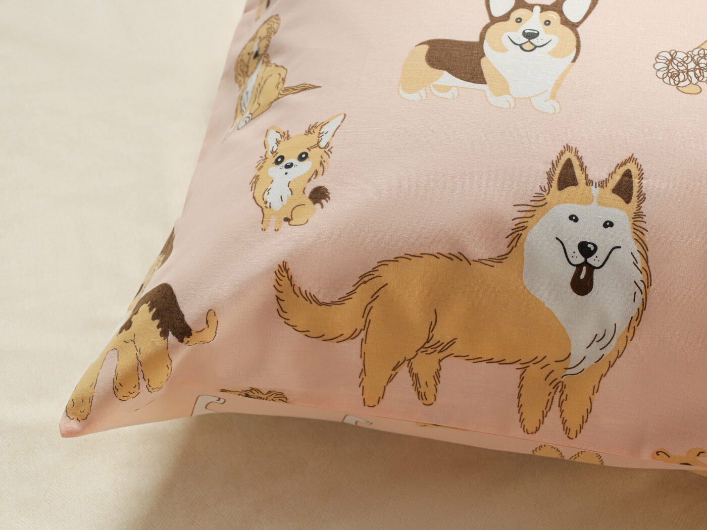 Наволочка – полностью из принтованной ткани, на запахе. Запах широкий, расположен сбоку по стороне 50 см.
