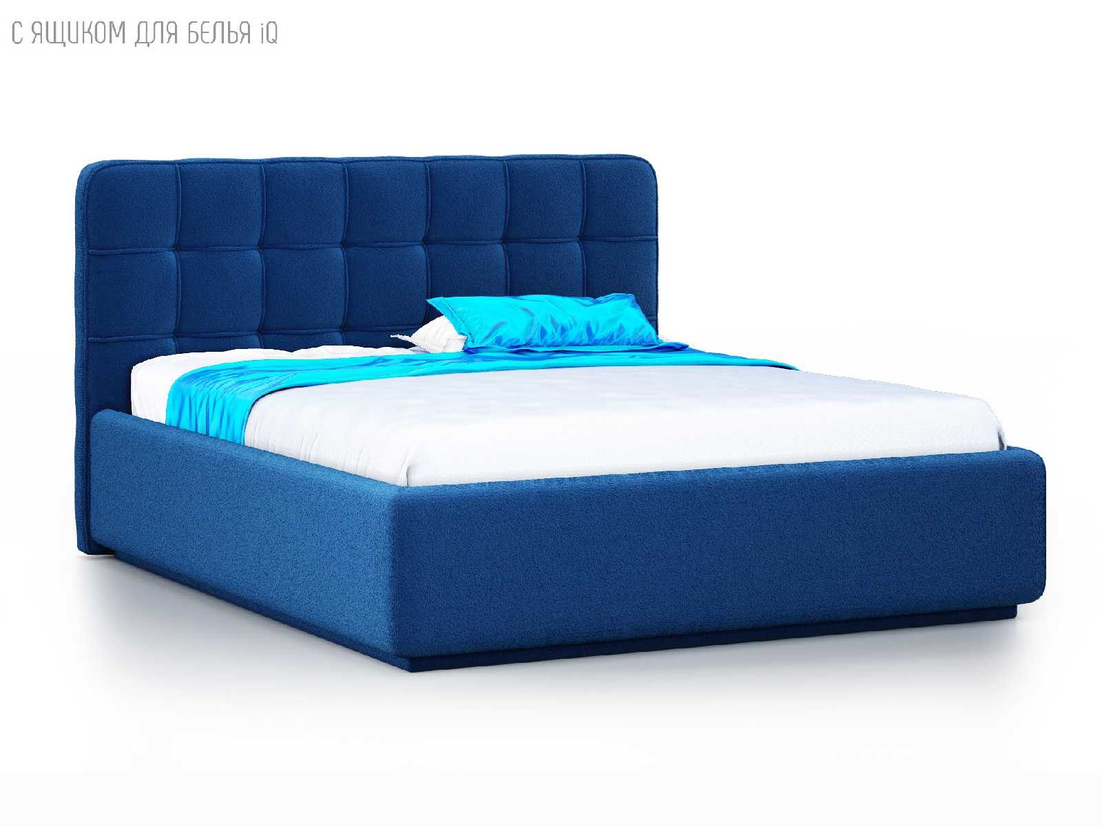 Кровать укомплектована IQ с подъемным механизмом и ящиком для белья без дна (дополнительная платная опция - дно к ящику IQ из HDF (ХДФ). Каркас кровати на цоколе, декоративный чехол на цоколе съёмный. Глубина ящика для белья - 30 см, без ограничения нагрузки на ящик.