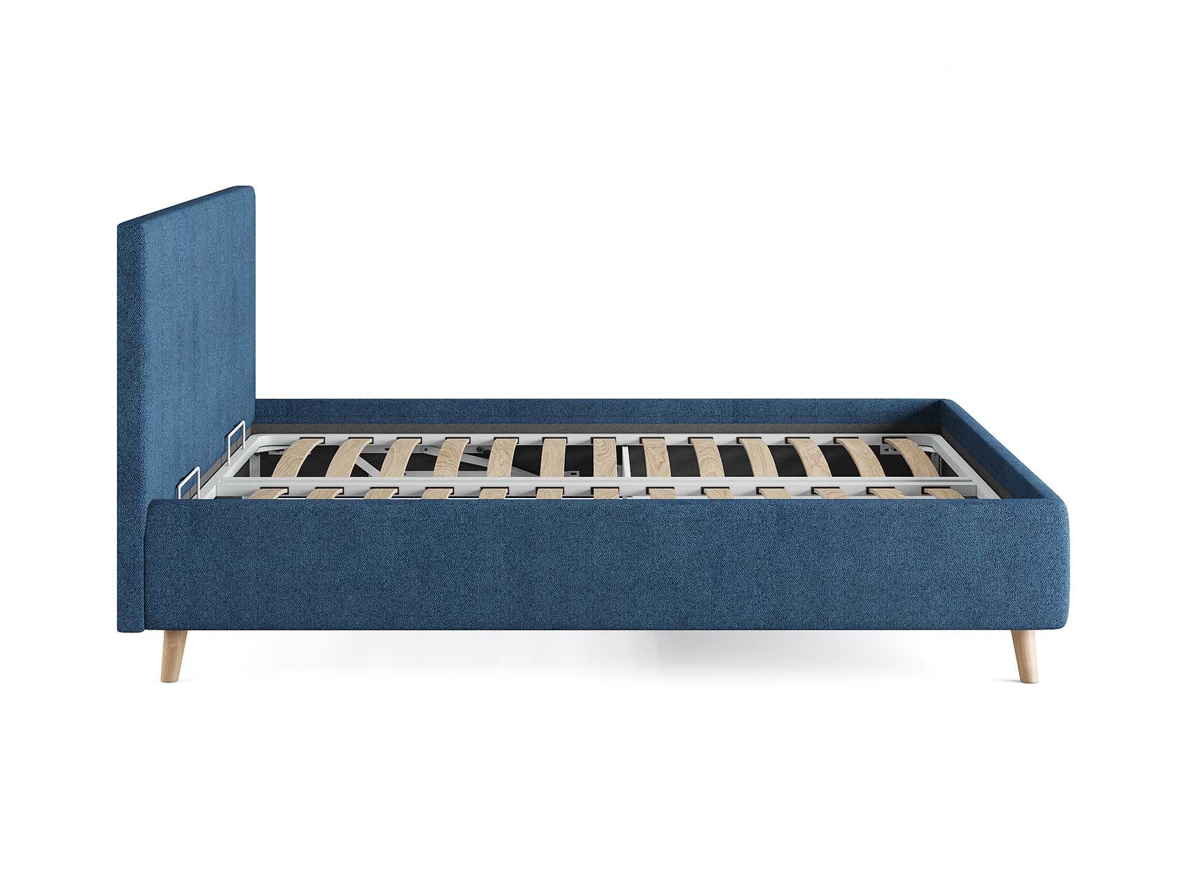 Кровать комплектуется металлическим основанием (без опор), которое имеет 13 рядов встроенных березовых ламелий на каждое спальное место, обеспечивая равномерное распределение нагрузки.