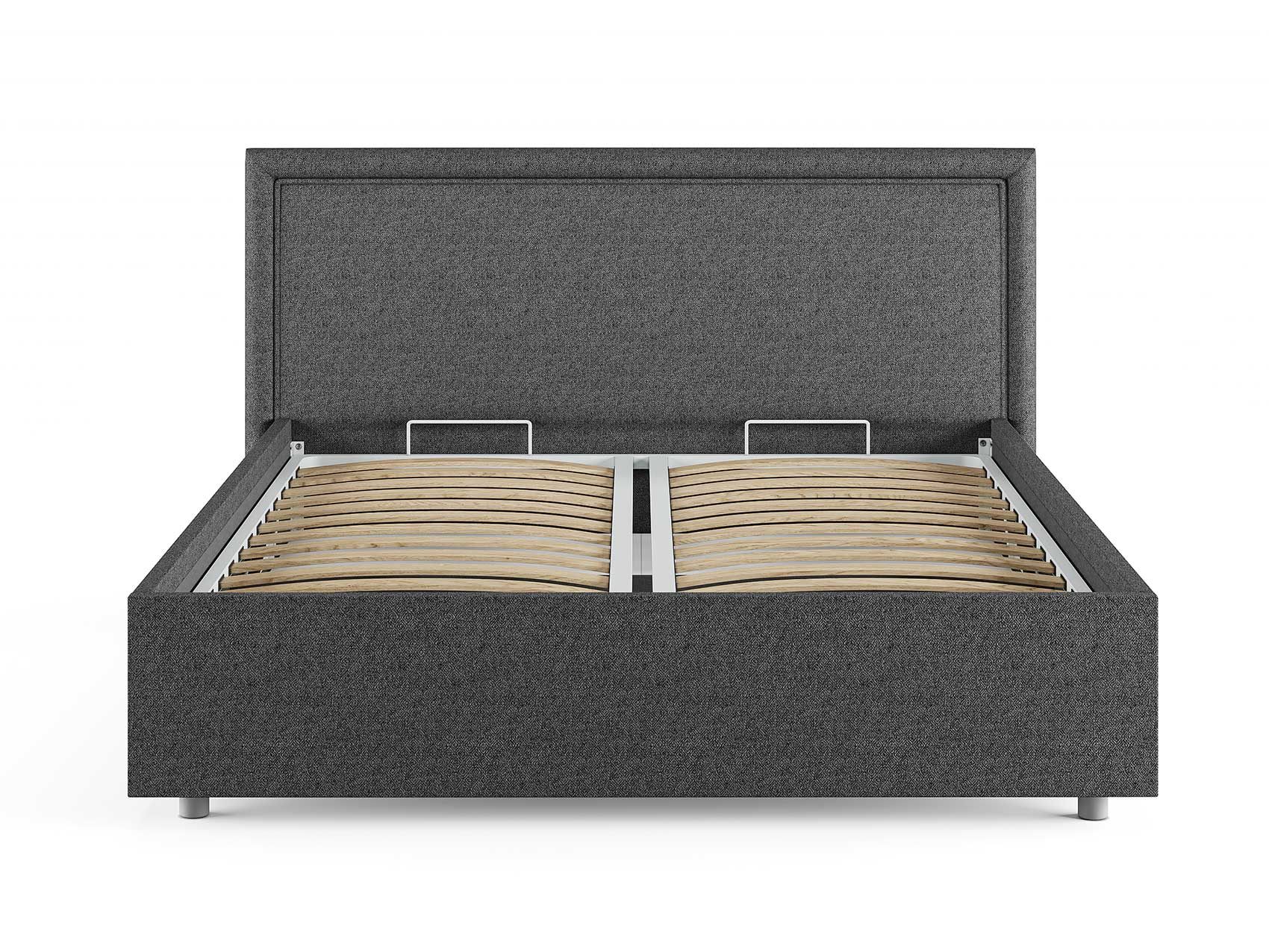 Кровать комплектуется металлическим основанием (без опор), которое имеет 13 рядов встроенных березовых ламелий на каждое спальное место, обеспечивая равномерное распределение нагрузки.