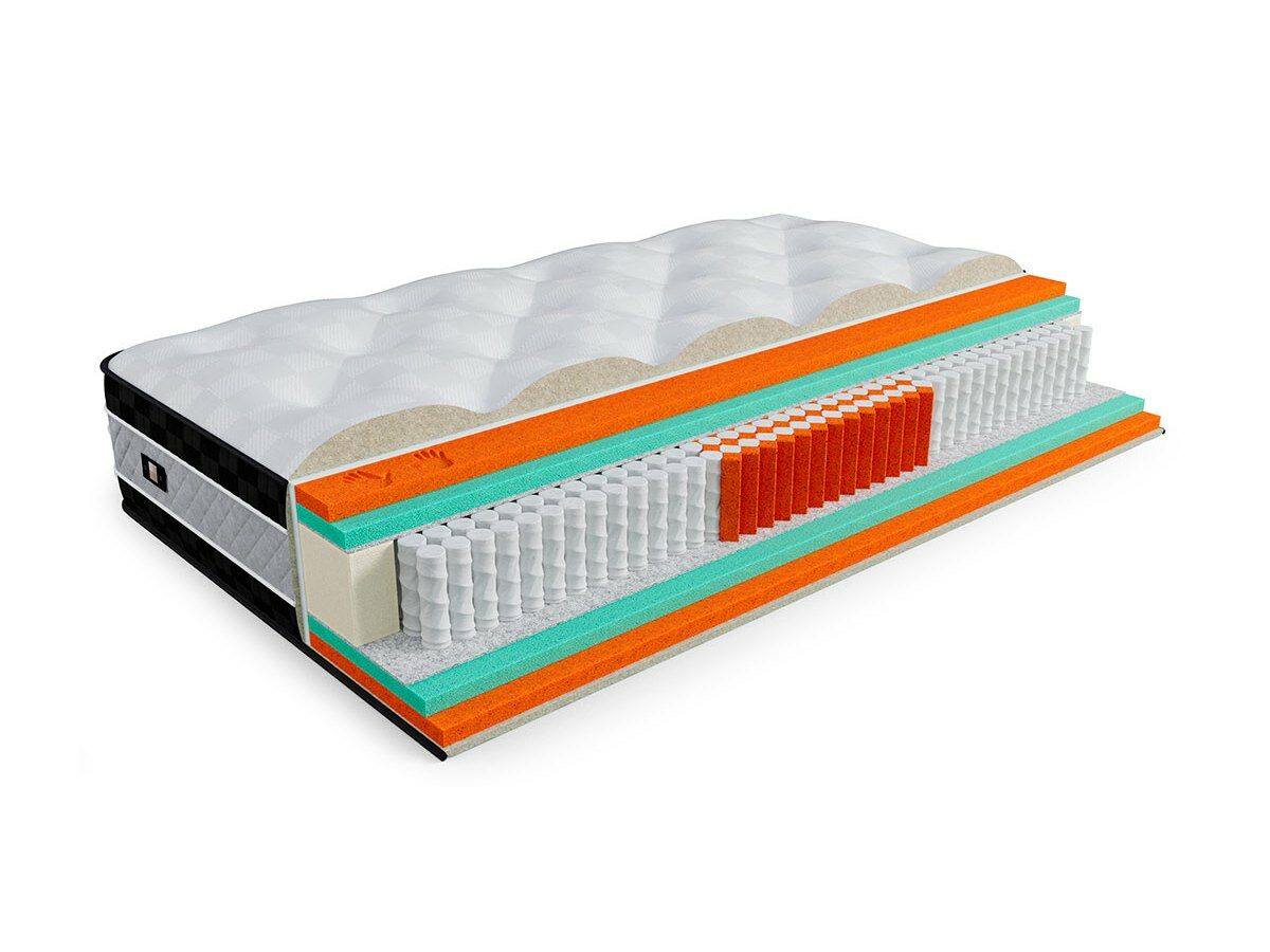 - Система поддержки SSP 800 пружин на спальное место с 3 зонами комфорта и высотой 16см, обеспечивает равномерное распределение веса и поддерживает каждую часть тела индивидуально. Уникальный пружинный блок разработан специально для коллекции матрасов Signature, включает в себя три зоны, в центральной из которых располагается натуральный пружинный блок из сои Viscoppper. Что позволяет защищать каждого из вас и более точечно распределять нагрузку и подстраиваться под ваше тело. А центральная зона готова нести повышенные нагрузки.