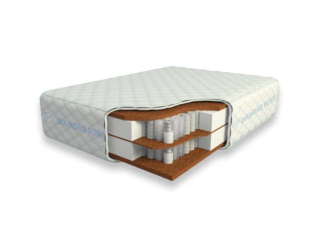 Матрас из серии Luxury Diamond имеет в своей основе двухъярусный независимый пружинный блок DP, состоящий из сдвоенных пружин диаметром 3-4 и 5-6 см. В качестве настилочных слоев с обеих сторон пружинного блока используется латексированная кокосовая койра, которая придает матрасу повышенную жесткость.