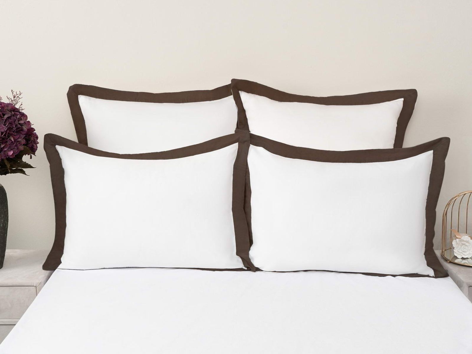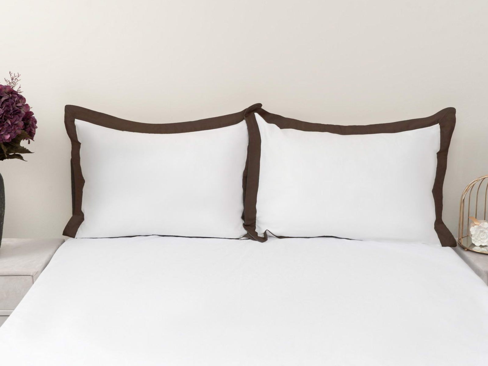 Комплект наволочек Флер изготовлен из высококачественного макосатина. Этот материал прочный, но мягкий, его гладкая поверхность придает постельному белью красивый внешний вид. Контрастные ушки наволочек придадут Вашей спальне красоту и изысканность. Они послужит замечательным подарком для родных и друзей.