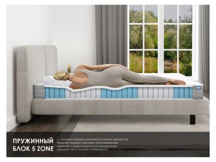 Это оптимальное решение для тех, кто любит спать на нежной, обволакивающей поверхности без потери ортопедических свойств. Матрас удачно сочетает эластичность натурального латекса и продвинутый ортопедический блок 5 Zone.