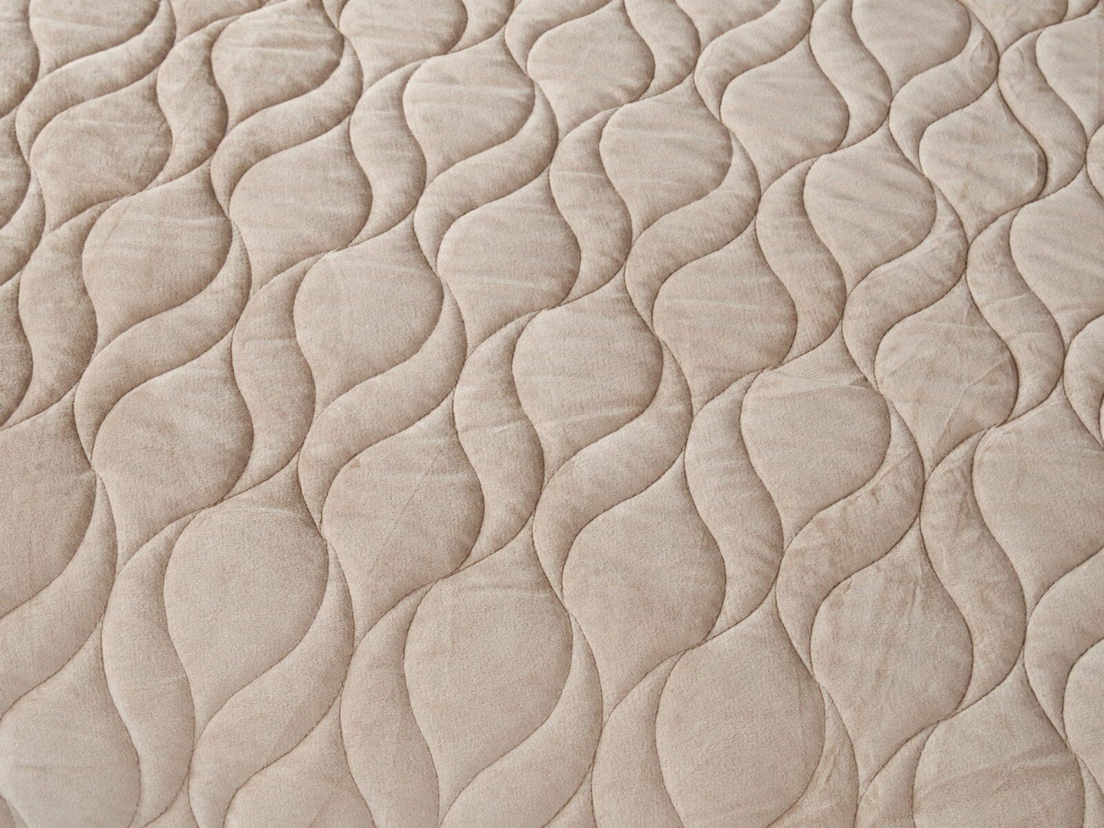 Покрывала и наволочки изготовлены из велюра высокой плотности - приятной на ощупь бархатистой ткани с коротким ворсом. Пошив покрывала с кантом, наволочки с ушками 5 см.