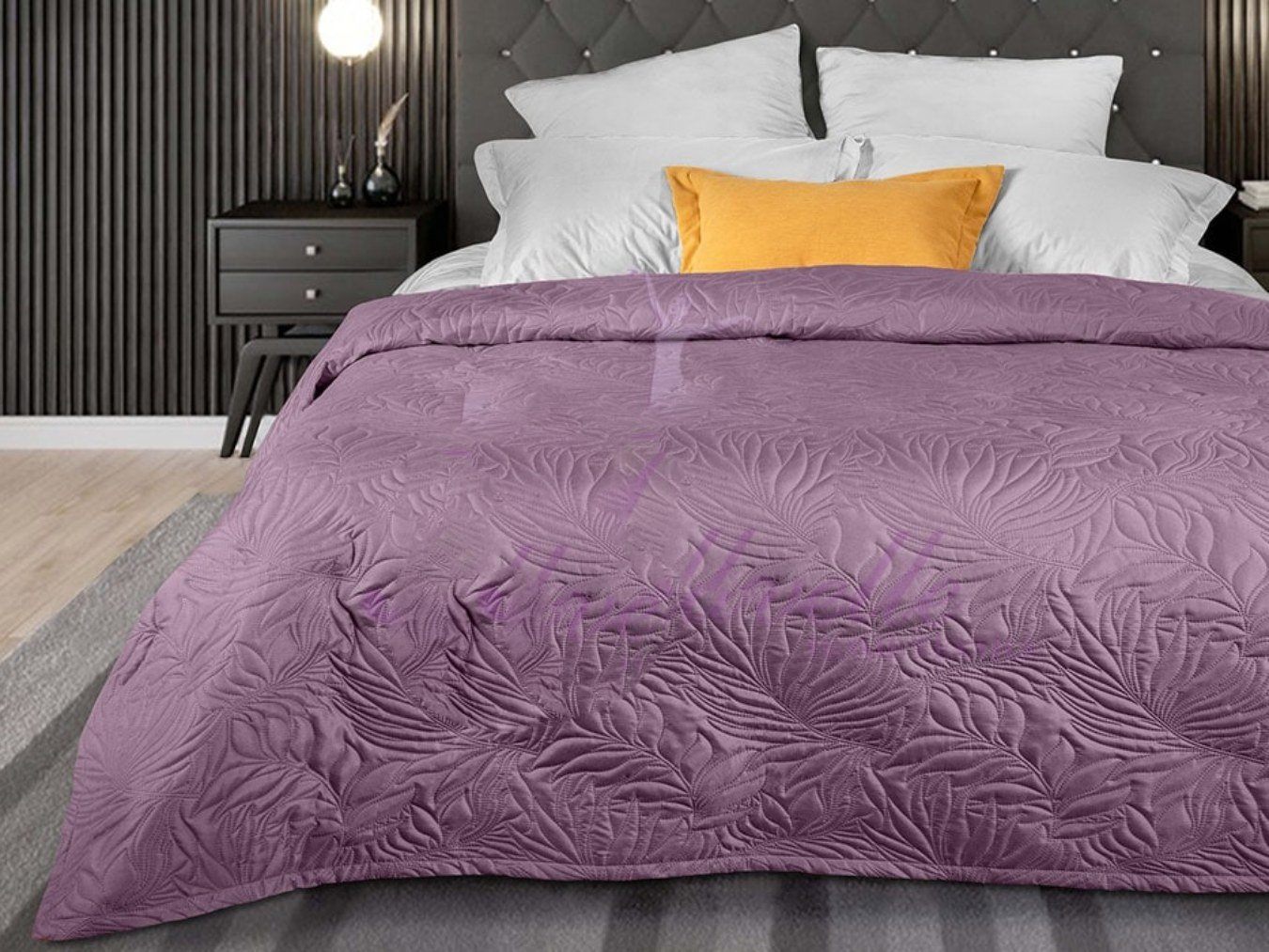 Покрывало Arti с оригинальной стежкой Листья в фиолетовом цвете сделает образ вашей спальни оригинальным и элегантным. Фиолетовый цвет успокоит, расслабит и снимет тревогу и раздражение.Изделие выполнено из современной ткани Биософт™ с бархатистой фактурой. Ткань не только приятная на ощупь, но и очень практичная. Благодаря ей покрывало обладает хорошей гигроскопичностью, хорошо сохраняет форму и быстро сохнет. Изделие изготовлено по уникальной технологии безниточной стежки Ультрастеп™, которая придает ему особую прочность и продлевает срок службы. Современный дизайн стежки в сочетании с благородными цветами идеально впишется в интерьер Вашей спальни.