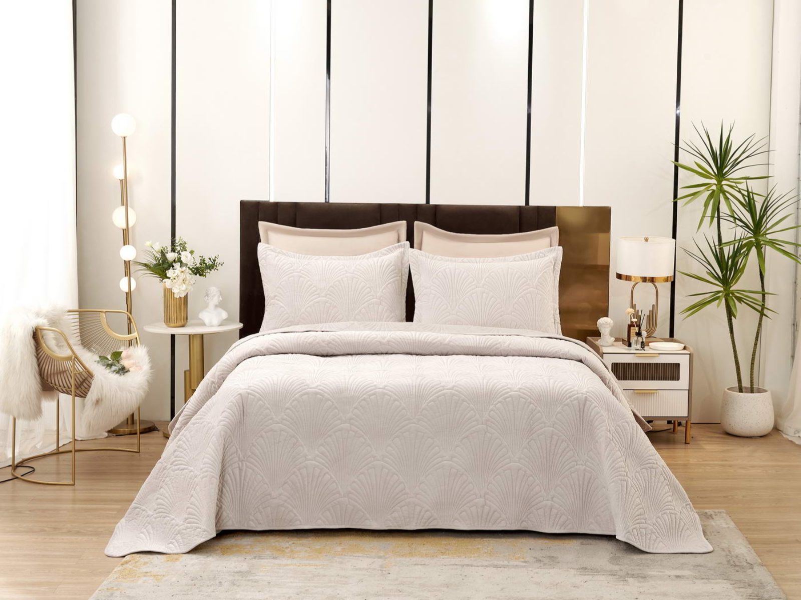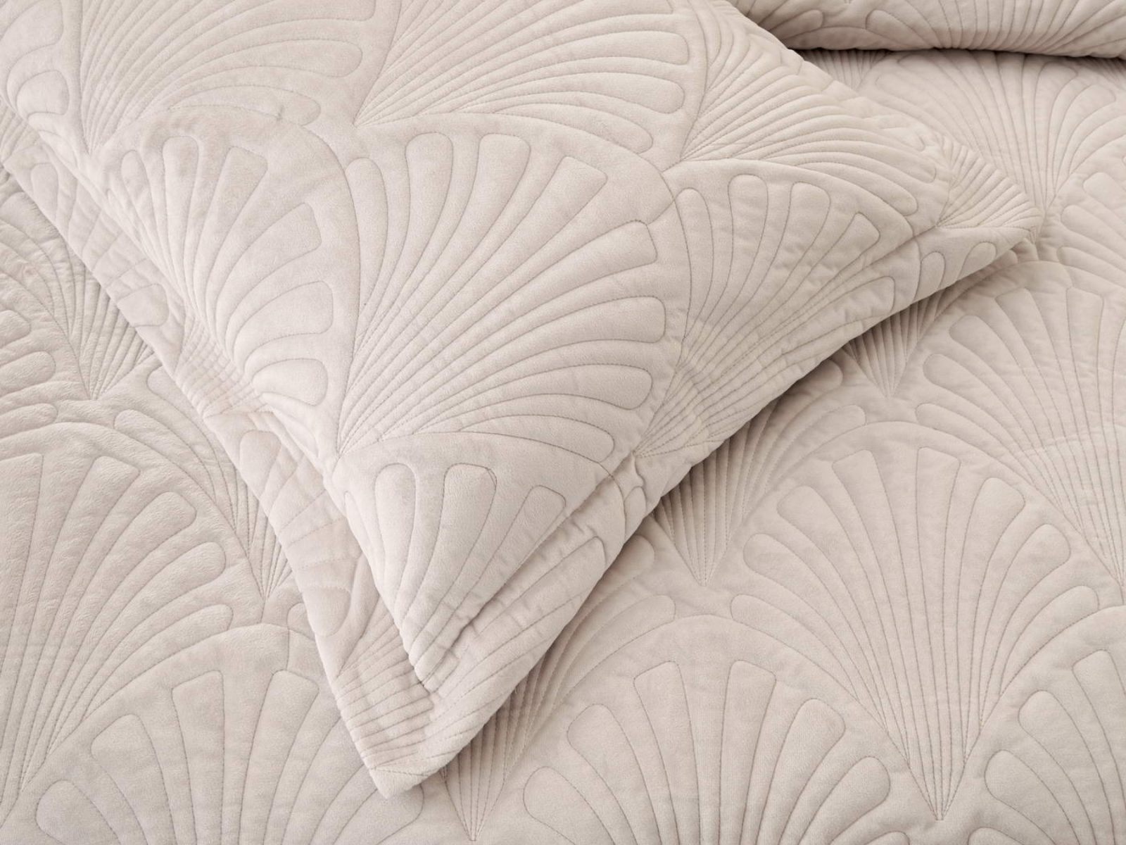 Роскошное велюровое покрывало Ариэль станет изюминкой любого интерьера, ведь оно потрясающе выглядит и приятное на ощупь. Обратите внимание на стежку покрывала – она выполнена в виде ракушек с эффектом 3D. Из-за особого плетения, велюровая ткань покрывала отражает свет и красиво переливается при различном освещении.