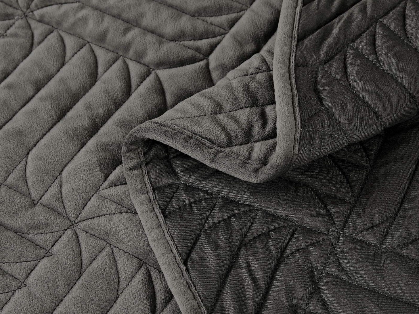 Покрывала выполнены в 10 оттенках: крем, мокко, пепельный, песочный, светло-бежевый, светло-серый, серый, темно-серый, чайная роза и черный. Стежка в виде геометрического орнамента подойдет к любому современному интерьеру. Из-за особого плетения, велюровая ткань покрывала отражает свет и красиво переливается при различном освещении.