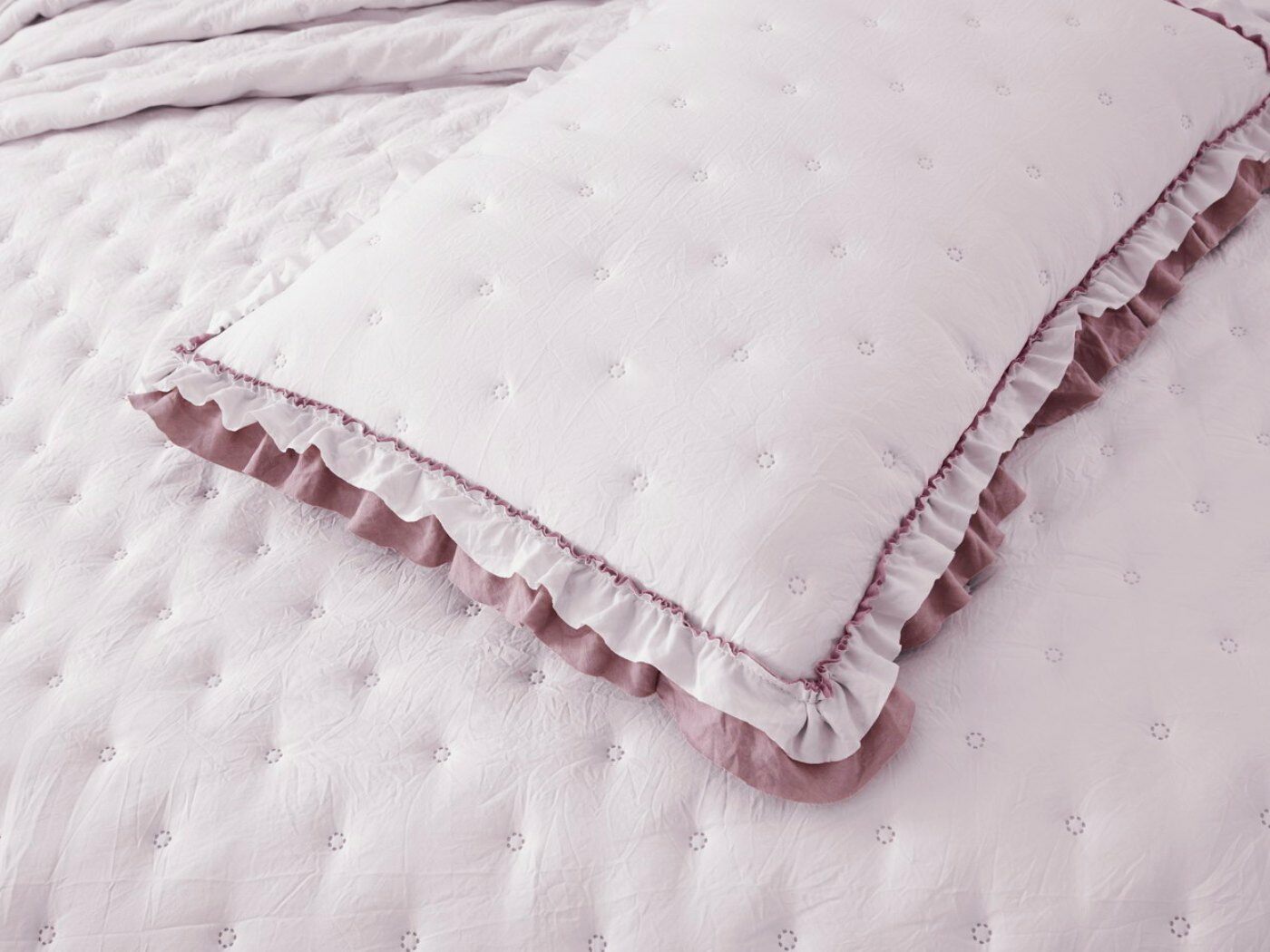 Покрывала выполнены в десяти оттенках, они подойдут для различных интерьеров, объединяет коллекцию потрясающее качество и приятный внешний вид. Изделия декорированы рюшами по краю, что подчеркивает из красоту и изысканность.