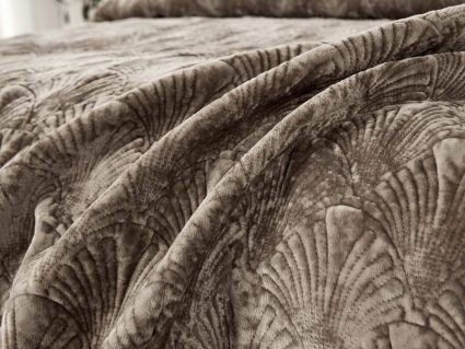 Бархатная ткань из 100% вискозы, придаёт покрывалу невероятную нежность и элегантность. Микроволокно в качестве наполнителя создаёт лёгкость и тепло, обеспечивая вам приятные моменты покоя.